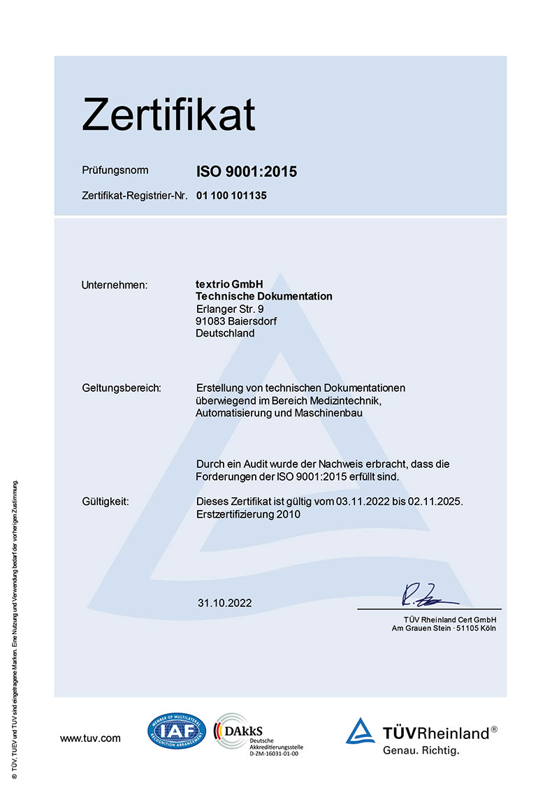 Seit über 20 Jahren unterstützt textrio große und mittelständische Unternehmen bei der Erstellung der produktbegleitenden technischen Dokumentationen.